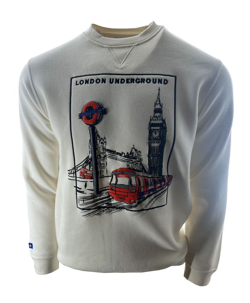 London Underground Unisex Embroidered Sketch Design Sweatshirt, Off White, XS to 4XL, Licensed
